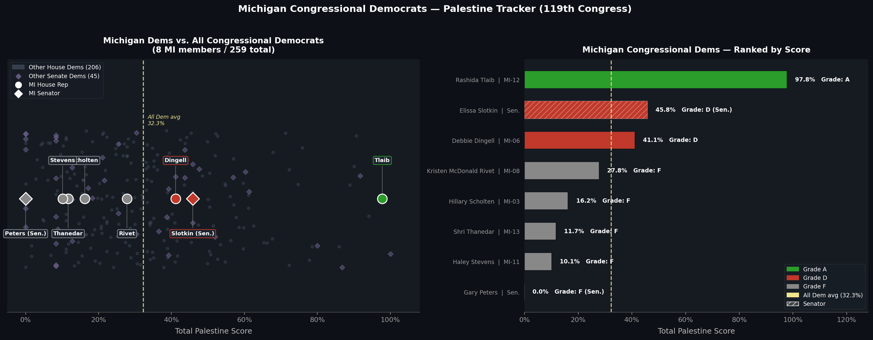 A recently circulated spreadsheet tracking how Democratic lawmakers vote on Palestine-related legislation is gaining traction online. For the eight Michigan representatives included in the dataset, the collective average comes out to a 'D' grade.